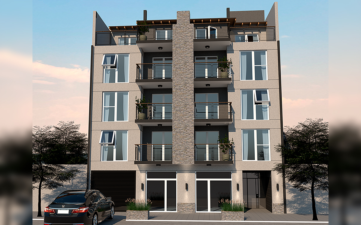 Este proyecto consta de dos bloques de viviendas, separados por un patio descubierto de 10 metros de ancho. Este espacio no solo conecta ambos bloques, sino que también actúa como un gran pulmón de aire y luz, proporcionando a los departamentos una excelente iluminación natural y vistas panorámicas de toda la ciudad.
