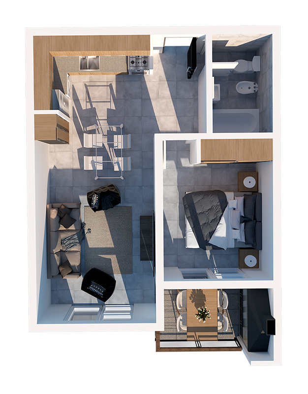 Los departamentos, diseñados para uso residencial y turístico, se presentan en tipologías de uno y dos ambientes. Cada unidad ha sido cuidadosamente diseñada para ofrecer amplios espacios y todas las comodidades necesarias para una vida confortable.